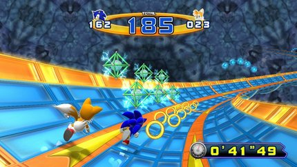 O que dá sobrevida, mas somente para os maníacos pelo mascote da Sega, é a velha caçada às chaos emeralds, pedras preciosas coloridas muito bem escondidas, uma unidade por zona, dentro da fase de bônus, que exige um alto número de argolas para ser acessada. Essa bonus stage é reminiscente daquela de Sonic 1, no primeiro episódio, e de Sonic 2, no segundo episódio. Mais óbvio, impossível. Por um lado, familiaridade é importante, atrai; só nos perguntamos onde foi parar o espírito criativo do time desenvolvedor! Quantos deles estiveram envolvidos na produção da trilogia clássica? Parece que todos, porque o conceito ficou reeditado além até mesmo do necessário ou do tolerável!