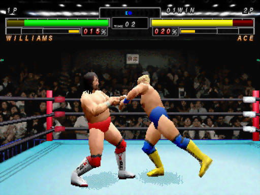 A primeira diferença para os wrestlers populares até o período é, portanto, que não se trata de um button masher (apertar um mesmo botão o mais rápido possível), mas um fighting como qualquer outro, tirando o enfoque nas regras do wrestler (em vez de um catadão em que cada um luta no seu estilo marcial) e o acréscimo de uma (pseudo-)terceira dimensão. AJPWfV é refinado – mais refinado para um wrestling, impossível! Os golpes e combos dependem de timing para entrar, há como contra-atacar e os personagens são rigorosamente balanceados. Ou seja, não é gracinha nem “vale-tudo”, no pior sentido (dedo no olho, xingar a mãe e coisa e tal): temos um sistema de batalha e ele é coerente!