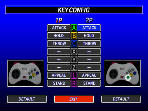 De volta à engine que mais nos interessa, All-Japan Pro usa 5 teclas e, como visto na imagem acima, o controle do Saturn dá e sobra para o jogo, com X, Y e Z sequer empregados. Três são as funções precípuas ou compatíveis com qualquer 1×1, se bem que num wrestler as duas últimas é que são mesmo indispensáveis: hit (golpe ou ataque em si), hold (segurada, agarrão) e throw (arremesso). Ainda tem dois movimentos que vários fightings incluem, dedicados ao L e R do controle: taunt (provocação) e block (guarda). Entremos em mais detalhes sobre cada um dos 3 primeiros comandos.