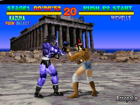 A genialidade máxima estava no leiaute das teclas. Cada botão do PlayStation é dedicado a um membro do corpo do lutador: braço esquerdo, braço direito, perna esquerda e perna direita. Tão simples, mas ninguém pensara nisso antes, ora! E mais: conciliar seqüências desses botões em diferentes intensidades e as mais díspares manobras com o polegar esquerdo no direcional rendia um cartel consideravelmente extenso de golpes. Mesmo um iniciante poderia sair estapeando o game pad e se dar moderadamente bem, a menos que estivesse combatendo um veterano, que já tinha descoberto, àquela altura, os time gaps para encaixar bloqueios, contra-ataques e arremessos sob medida que os marinheiros de primeira viagem julgariam impossíveis ou pura sorte. Mas vamos quebrar a dissecação da gameplay em dois, e afundemos um pouco na história primeiro!