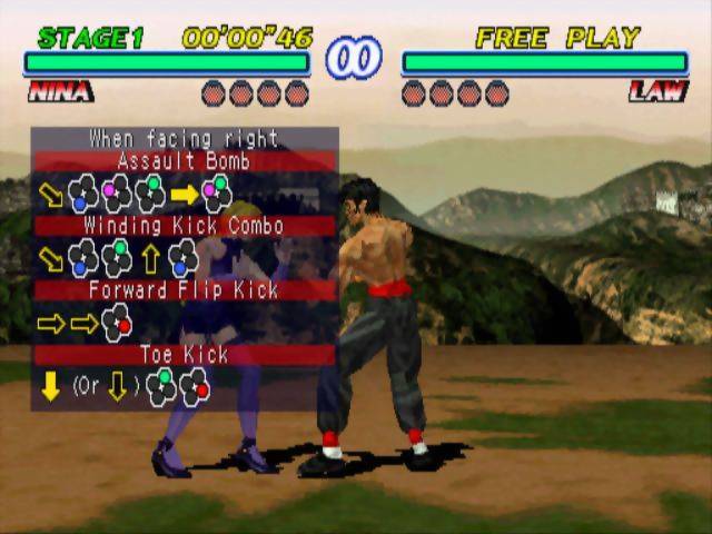 De praxe em Tekken é a missão de terminar ao menos uma vez com cada character a fim de liberar cada vez um fighter diferente no menu. Os antigos retiveram seus movimentos da primeira versão (o que inclui seus ataques mais apelões, de que alguns reclamam), o que livra o veterano de uns bons minutos fuçando no Practice. Inclusive, uma virtude é poder pausar a ação (em qualquer modo de jogo) e trazer à baila uma move list dos dois que estiverem lutando. Sábia e apreciável cola! O Arcade mode está intocado (poderia estar mais extenso), mas agora uma pletora de modalidades subsidiárias salva um pouco da durabilidade do produto: Survival, Team Battle (para times de até 8) e Time Attack.