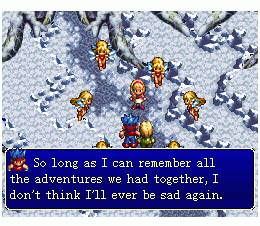 Red (Vermelho) e Blue procuram por seu pai, ao passo que alguns sujeitos pouco confiáveis estão atrás de Rain (Chuva) e Ponga para realizar algum Propósito Nefasto.™ Sejamos honestos, a trama de Role Playing Games nos 16 bits não fica muito melhor do que isso… Apesar da disparidade de objetivos – uns correm atrás de alguém que não sabem onde está, outros fogem –, os quatro se unem para se ajudar mutuamente. Sai confusão, entra confusão, o quarteto está sempre colidindo com os servos de um tal Lorde Negro. Há momentos memoráveis como o confronto com o autoproclamado Cientista Maluco-com-papagaio-no-ombro (nada tão cringe quanto o protagonista de Steins;Gate, nada tema!)…