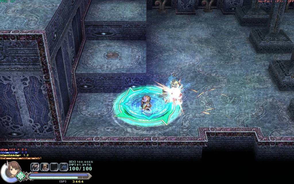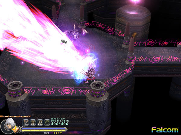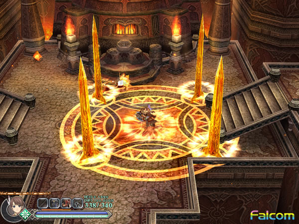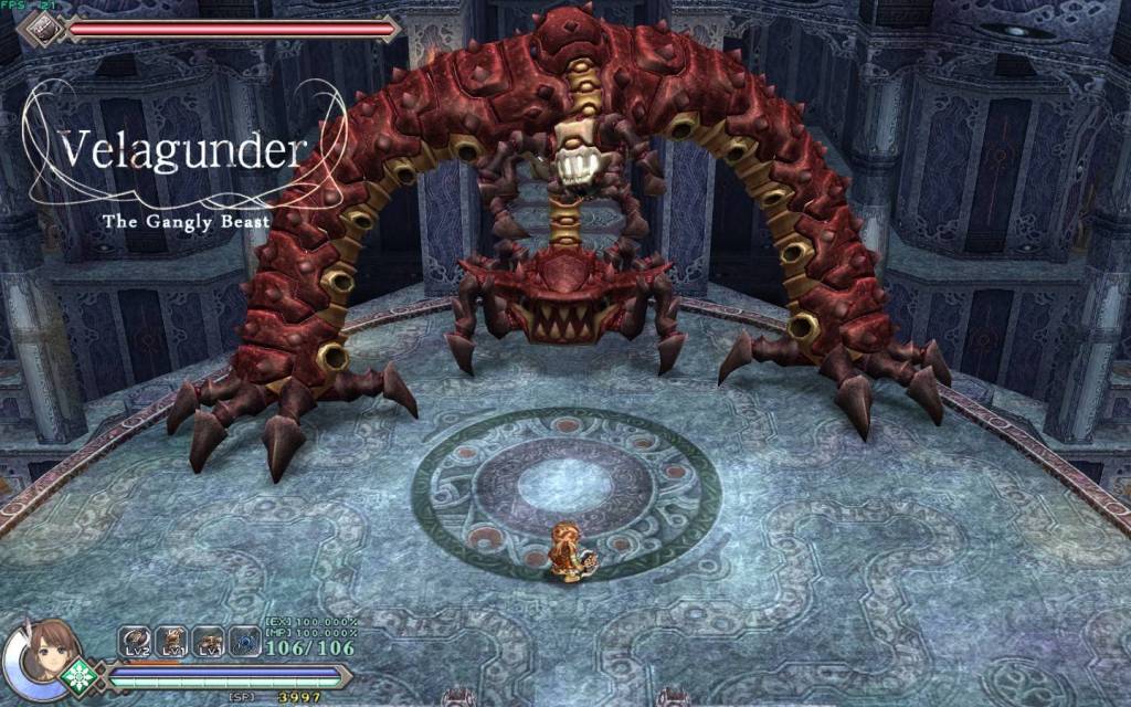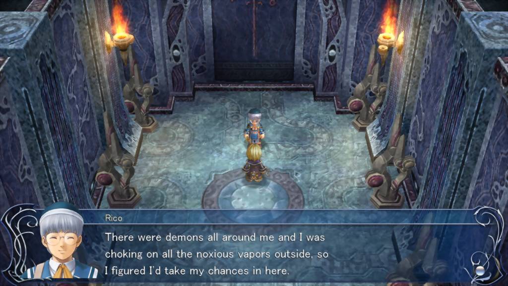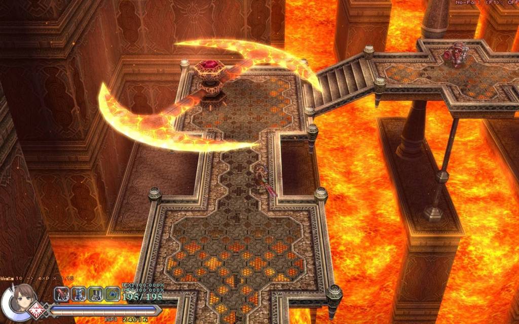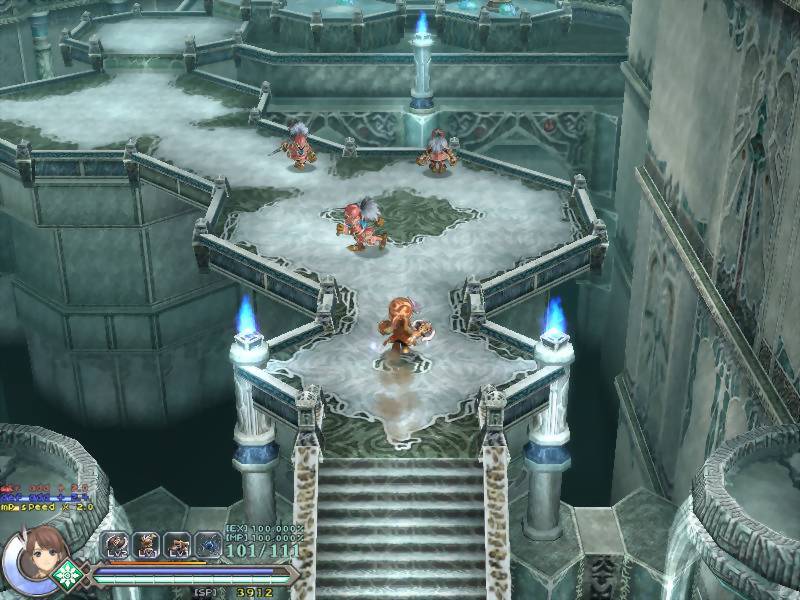 A essência da gameplay, sair de sala em sala dizimando os demoninhos de escala mais baixa (a cada andar mais desafiadores) não deixa de me lembrar Dynasty Warriors, com a possibilidade de seu polegar direito ficar marcado de tanto apertar a tecla de ataque ou ação principal, e no entanto englobando, a dita mecânica, gestos acessórios que entretém e dinamizam as coisas: esquivas, o mais das vezes na forma de pulos, muita atenção ao padrão de ataque dos adversários e, nas horas mais críticas, recorrer a técnicas especiais. Ser evocativa de DW e conseguir ao mesmo tempo ser considerada a série com atmosfera mais Zelda depois do próprio Zelda, principalmente uma atmosfera de A Link to The Past ou os Zeldas de Game Boy, mas duas, três vezes mais rápida, é o charme inimitável do carro-chefe da Falcom, embora para alguns isso gere um feeling de um game “jack of all trades, master of none”, mescla de todos os estilos e mestre absoluto de nenhum (eu particularmente adoro a impossibilidade prática de encaixar Ys num estilo, então não encaro a expressão do ângulo crítico ou perverso).