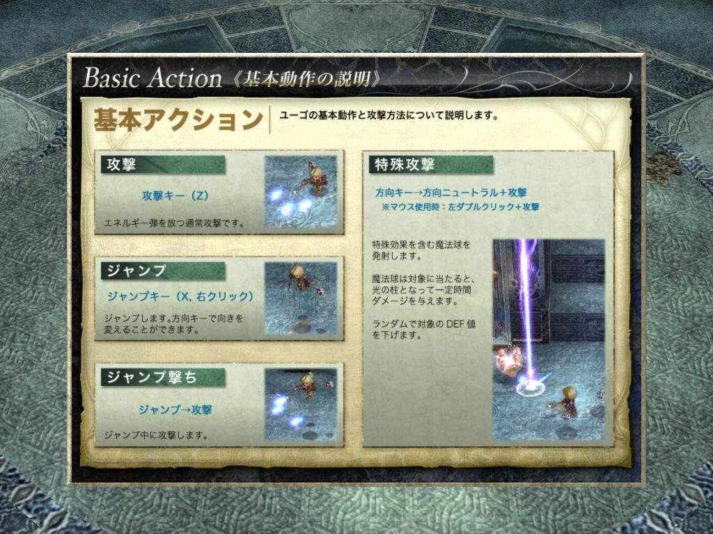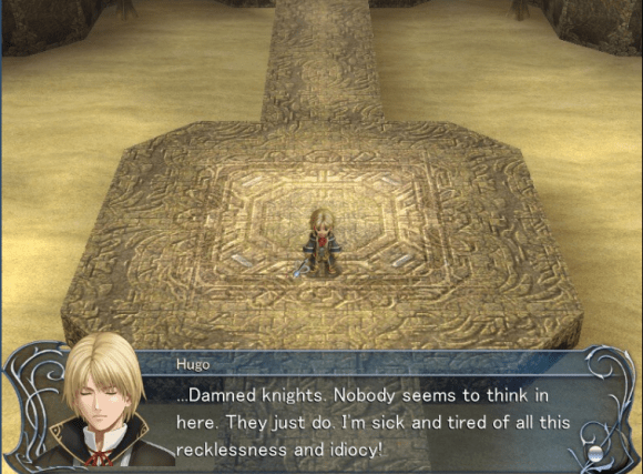 A primeira escolha consciente do controlador será se abre um arquivo de jogo protagonizado pela guerreira que prioriza a força bruta Yunica Tovah ou por um jovem e orgulhoso mago chamado Hugo Fact.