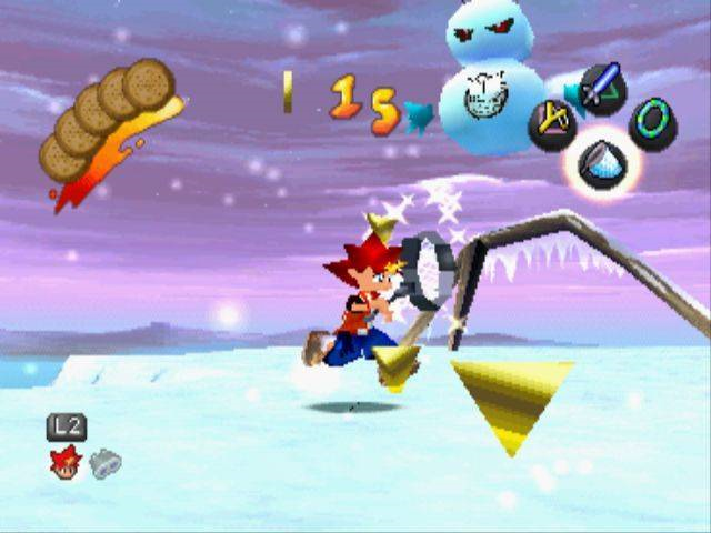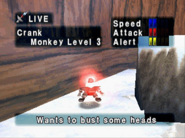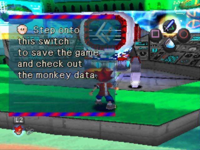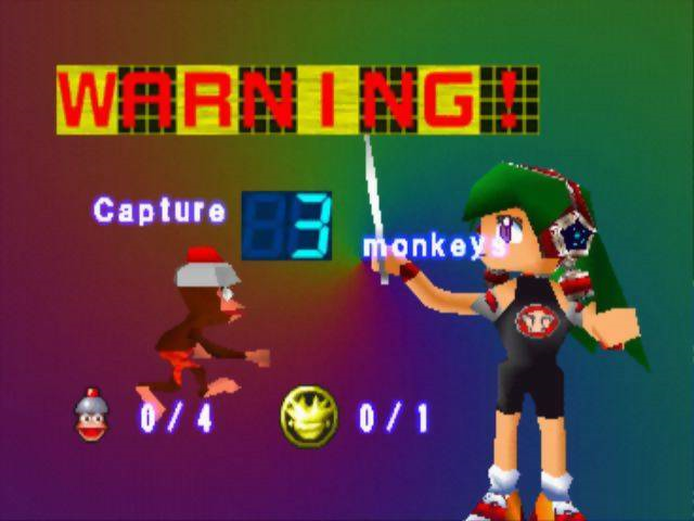 Como de praxe, serão muitas (20) fases com objetivos bem-estabelecidos e muitas seções de salto em profundidade, como a cartilha dos 3D Platformers mandava e ainda manda. Alguns exemplos de apetrechos, além da rede, que Spike usará: o radar (como que um radar das esferas do dragão, só que adaptado para detectar um certo animal curtidor de bananas!), o porrete, que para ser family-friendly mais parece um sabre de Star Wars (como são alvos muito serelepes, talvez seja uma boa idéia ‘sossegá-los’ um pouco antes de fazer o serviço, i.e., dar umas porradas antes de tentar prendê-los!), e eventualmente acessórios ainda mais incríveis conforme Spike progride, como um estilingue, um leque que ajuda a levitar (o “pulo duplo” da vez), um carrinho de controle remoto e assim por diante. Cada uma dessas coisas, visivelmente alocadas aos botões frontais conforme preferência do jogador com muita inspiração no display de The Legend of Zelda:OoT, fará um imenso sentido com o tempo, se o leitor ainda não foi capaz de juntar as peças e imagina, pela descrição, que Ape Escape não passa de uma sucessão desconjuntada de parafernálias sem-sentido.