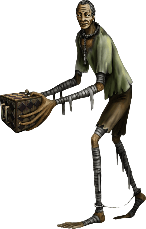 Longneck (favor não beber!): Vai reclamar bastante e pedir incessantemente Heart seeds (sementes-coração). Cheio de remorso sobre algo que de início não quer confessar. Ele não se dá bem com o Coffin Man!