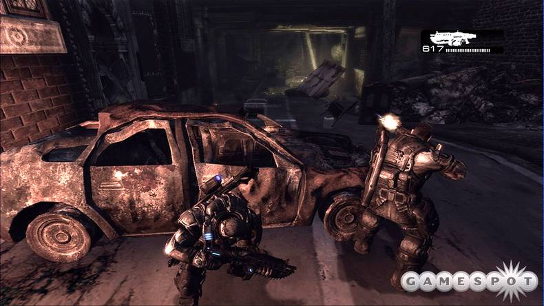 Em Gears of War, colunas de concreto são suas melhores amigas. Claro que, se não tiver jeito, carcaças de carros, metal entulhado ou mesmo um simples batente de porta podem resolver. Por que esses objetos inanimados são tão amistosos? Porque, de qualquer modo, em GoW ou GW, caso não se camufle ou se proteja, você estará morto de imediato. Trata-se basicamente de um pique-esconde em uma roupagem sci-fi campeão de vendas para Xbox 360 e sucesso de crítica em seu ano de lançamento, 2006.