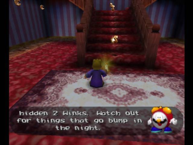 O expediente do X+O (que nos platformers de N64 sói-se executar com A+Z), isto é, a bundada ou porrada vertical num switch ou alavanca, marca sua presença, sendo o gatilho para abrir um sem-número de portas ou estruturas. Outras portas possuem selos mágicos e a única maneira de destravá-las é colecionando cogs ou engrenagens douradas (Donkey Kong Country 3!), normalmente em múltiplos de 10. Esse método de abrir portas remete também à BK e suas áreas do covil de Gruntilda acessívels apenas após amealhar ‘x’ notas musicais. Há 4 Dreamkeys (chaves dos sonhos) em cada mundo e determinada quantidade de Winks para resgatar. Obviamente a razão do jogo se chamar 40 Winks é que há quatro dezenas desses guardiães tão necessários para nosso repouso diário (ou eu diria noturno). Sem as chaves não se pode enfrentar o chefe do mundo. Sem derrotar o chefe do mundo não se pode visitar o próximo. As coisas são bem lineares nesse sentido.
