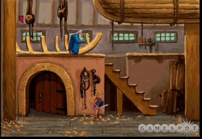 Por incrível que pareça (de novo!), é possível arrancar informações preciosas dos NPCs dando espadadas (!!) neles, o que desencadeia uma animação! É importante tentar de tudo caso se esteja travado na saga, que não é muito linear, já que se os veteranos de Zelda forem apenas pela intuição e experiência típicas da série-padrão, jamais terão idéias lunáticas como essa! Inteligência e bom senso nem sempre é tudo… Ah, os anos do point-and-click…