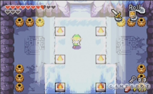 A esquema para derrotar Vaati é manjadíssimo: explorar 4 templos elementais: Terra, Água, Fogo, Vento — com as 4 essências torna-se possível reengastar a lâmina duma espada sagrada. Como sempre, múltiplos andares em cada dungeon, itens importantes aqui e ali e o chefe obrigatório. Há outras 2 dungeons sem temática para completar o “sexteto de desafios” antes do embate definitivo.