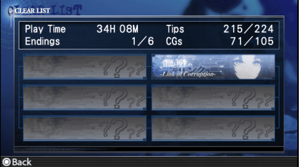 Amantes de visul novels provavelmente gostarão de jogar a parte que se estende do prólogo até aproximadamente a metade pelo menos uma vez, e o restante pelo menos duas vezes, se é que não são completistas natos, podendo exceder as 100h de gameplay. Achievements de Steam ou PlayStation Network exigirão o dobro do tempo que gastei no jogo, sem dúvida, mesmo diante de “leitores mais dinâmicos”.
