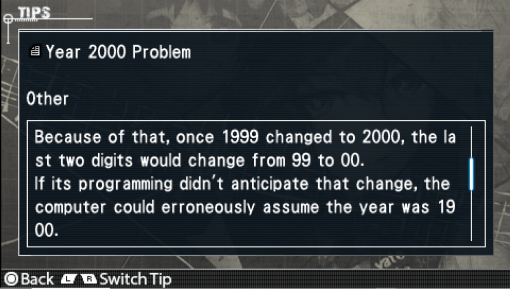 As mecânicas da viagem no tempo (obviamente o processo é fictício, mas é embasado em teorias verídicas do campo teórico da física do mundo real) são explicadas em pormenor (o que já de per se deve assustar o leitor ou boa parte do público apenas semi-interessado…), mantendo consistência, sem que um episódio ou outro exagere nas exposições, havendo diluição desse conteúdo mais “denso” pela extensão de toda a novela. Claro que, a partir do ponto em que bifurcações conduzem a finais diferentes (cerca de a partir dos 60% da duração total da novela), o jogador já estará ciente de todas as regras que se aplicam no caso do irreverente Okabe. Há uma parte do menu chamada tips dedicada a explicar palavras ou termos técnicos que aparecem nas falas grifados em cores contrastantes, podendo este glossário ser aberto na entrada mais recente com um simples L1 ou R1. O glossário não é só técnico-científico, misturando as glosas culturais também hiper-complexas das relações Ocidente-Oriente. Nenhum nome apresentado na novela é real, quando o assunto é referências culturais, mas é bem patente quando invoca uma obra da qual está tirando uma casquinha, como Ghost in The Shell ou similares.