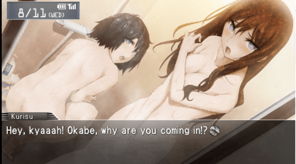 Como todo veterano de visual novels poderia identificar como tropo do gênero, deve ser constatado que o tom mais iridescente, urbano e cotidiano de S;G adquire cada vez mais nuances sombrias, conforme se progride. A altura em que isso ocorre, e com “poucas transições”, deve ser a razão de uma fatia dos jogadores considerar que esta é uma VN “lenta para engatar”. Mas não estamos aqui só para experimentar os momentos funestos, e todo o investimento valerá a pena. Há cenas e atos verdadeiramente desconcertantes, e exatamente como em Muv-Luv Alternative, não por acaso já evocado pela segunda vez, Steins;Gate sabe como impingir aflição e ansiedade. Não jogue quando estiver se sentindo pra baixo!