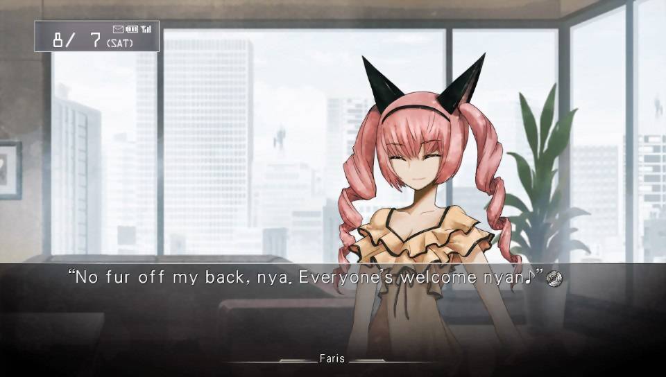 Visual novels como Steins;Gate são perfeitas para mudar a opinião do público sobre o gênero: se nem uma obra como essa conseguir finalmente atrair e baixar a guarda dos mais refratários ao conceito de gameplay, talvez seja um tipo de jogo que estes usuário devam simplesmente evitar até o dia de suas mortes! A versão mais popular de S;G é a de 2015 no PlayStation VITA – e afinal foi aquela que quebrou a barreira da linguagem, ocidentalizando-se –, mas felizmente o jogo também se encontra em língua ocidental nos mais acessíveis PlayStation 3, PC (Steam ou cópia física) e incrivelmente iOS, sendo exclusivo da zona anglófona. (Japoneses não usam muito iPhone? Poderia parecer que é o caso, mas notamos na prática pela ficha técnica do produto que ele foi lançado na América inicialmente apenas em japonês e chinês nesse dispositivo, a tradução tendo demorado 5 anos!)