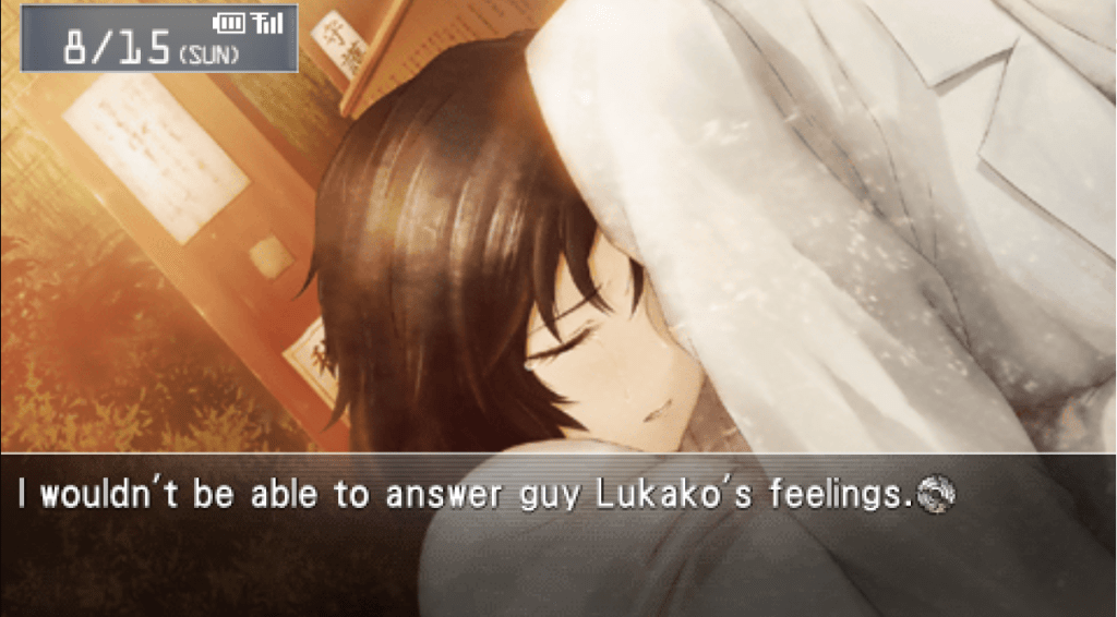 No final, após alguma hesitação, Luka concorda em retomar seu corpo masculino, com uma condição: ela(e) e Okabe devem sair para um encontro. Ela se declara. Devido a sua inexperiência, e à própria inexperiência de Kurisu, com quem Okabe havia buscado conselhos, ambos se vêem lendo um livro, How to Date, Como ter seu Primeiro Encontro, numa possível tradução.