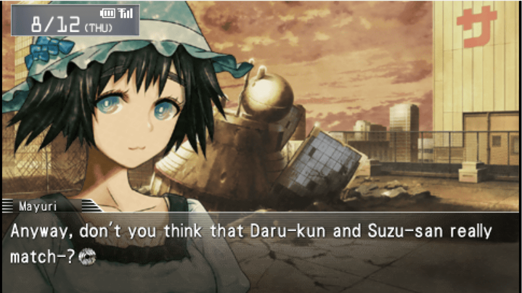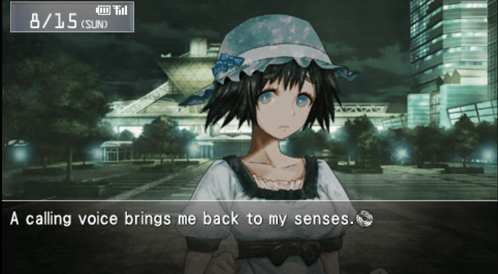 Dia 21/8, três semanas após os eventos inaugurais da narrativa, Daru recebe a ligação de uma “mulher misteriosa”. A ligação é passada para Okabe, que descobre ser Suzuha na linha, outra pessoa que evidentemente os demais já esqueceram. Essa é uma Suzuha que acaba de chegar do futuro pós-apocalíptico, mas um futuro ainda pior que o da primeira Suzuha.