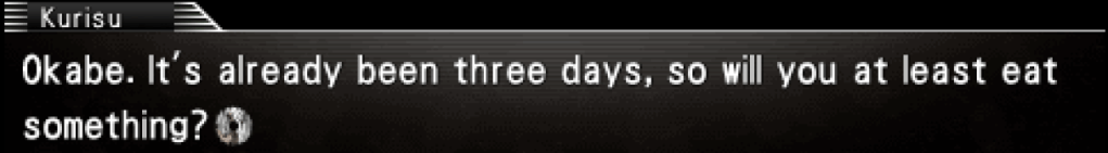 Em suma, Okabe apenas usa o psicológico para fazer com que Nakabachi o esfaqueasse deliberadamente, correndo o menor risco possível (se não para a própria integridade, para a vida de Kurisu). Kurisu tenta ajudar, mas acaba nocauteada pelo taser. Nakabashi foge.