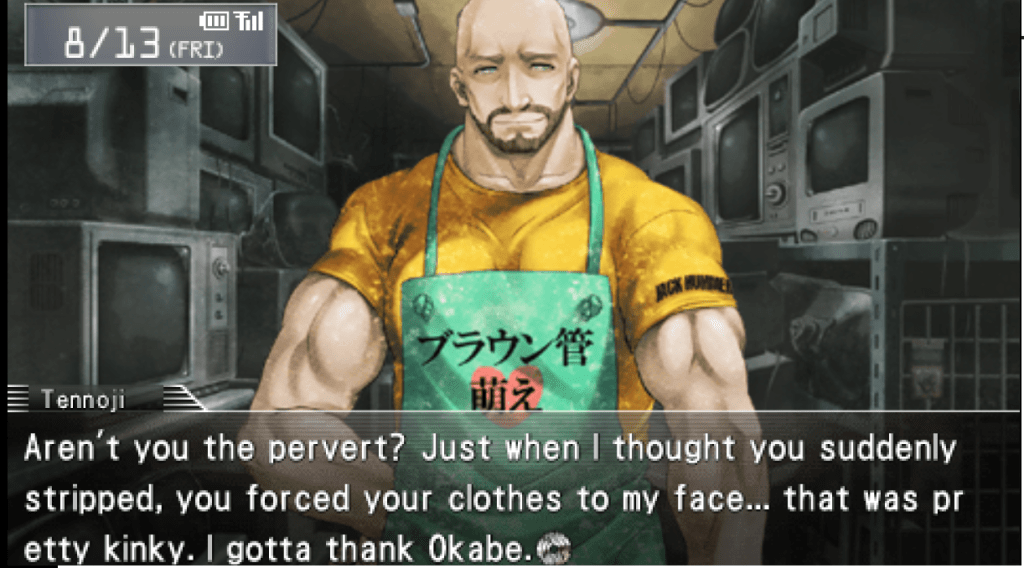 Okabe, chocado, procura Tennouji. Ele quer saber como ambos (Mr. Braun e Suzuha) travaram conhecimento, e onde ela estava agora, a Suzuha dos anos 70 que envelheceu. Tennouji é um imigrante francês, e conta sua história. Suzuha foi uma boa pessoa que o acolheu no Japão, mas eventualmente ela cometera suicídio. A loja de TVs de tubo, isto é, o imóvel em que ela – e o lab – está, foi-lhe deixado(a) de herança por esta mesma mulher. Tennouji parece ignorar por completo o fato de que sua ajudante de meio-período era a mesma Suzuha, mais jovem. Ironicamente, ele a acolheu quando ela veio a esta época, de um Japão pós-apocalíptico, “pagando” o favor (ou teria sido o contrário? delicioso paradoxo das viagens no tempo!).