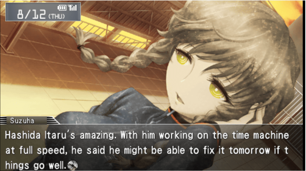 Para desgraça de Okabe, o IBN 5100 passou para as mãos do inimigo após os experimentos com o D-Mail. A única forma de restabelecer um mundo em que o instituto de física aplicada não o transformasse numa ditadura tecnocrática seria confiando em Suzuha e em sua ida aos anos 1970. Okabe não hesita em pedir a ajuda de Daru, conjeturando que talvez o “satélite” tenha conserto. A máquina do tempo de Suzuha era apenas um protótipo, diferente das da SERN, capaz de ir somente para trás no tempo, afora o fato de que possuía combustível suficiente tão-só para uma última viagem.