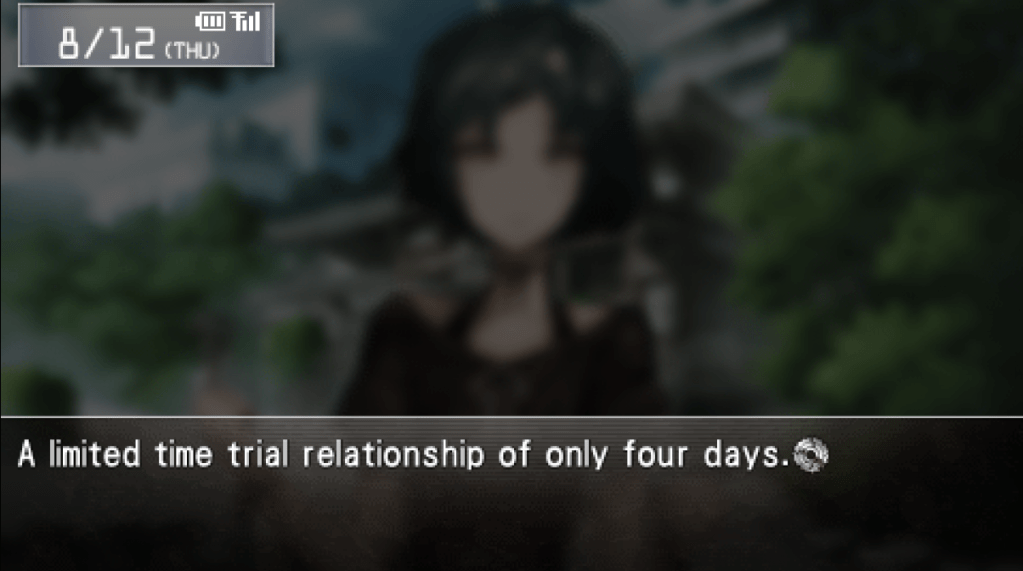 Esse poderá ser um pouco mais complicado, pois necessita de Moeka, a assassina de Mayuri em tantas realidades paralelas, a única “labmem” que não só não é uma amiga íntima de Okabe como não tem paradeiro conhecido, ainda que possa ter voltado a ser uma pessoa inofensiva, quiçá, tendo, ainda por cima, dificuldades de comunicação ou algum transtorno de personalidade. Okabe, com paciência de Jó, explica toda a situação dos time leaps a Kurisu, que novamente compreende e é uma boa consigliere.