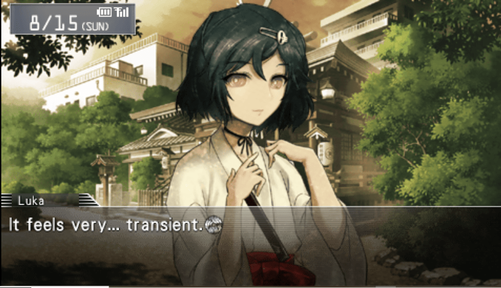 Okabe pensa que muitas pessoas já sofreram coisas indizíveis para que ele tentasse modificar o futuro, sem nenhuma certeza de poder realmente salvar Mayuri. Ele acaba desistindo, sentindo-se, além do mais, atraído por Luka.