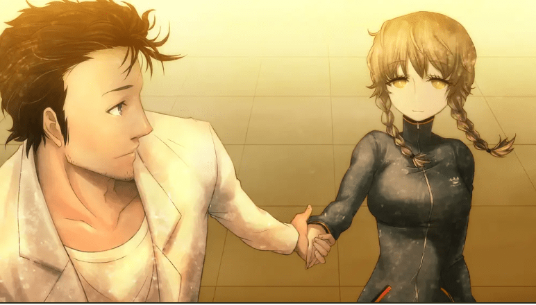 Quanto ao último broche, o de Kurisu… Okabe se depara com ela na rua. Ela estava a sua procura para agradecer o fato do cientista louco ter salvo a sua vida no dia do ataque do pai. Sem bem saber o porquê, ela recebe o último memento do Steins Gate…