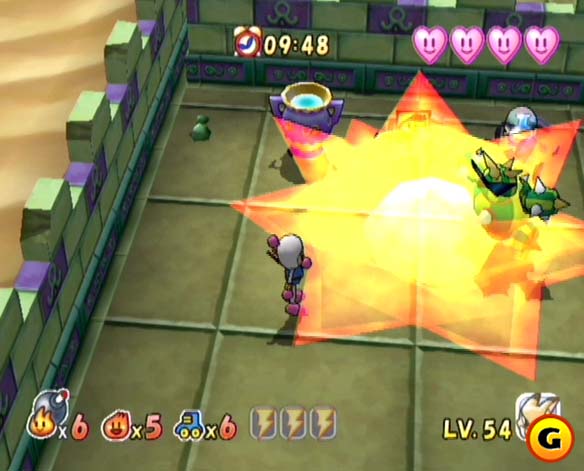 O prazo de validade do mini-DVD é procrastinado ao máximo porque Bomberman Generation possui ainda um modo para 4 jogadores em arenas muito estilosas e retrôs. São 5 modos, todos repletos de customizações subsidiárias. O modo clássico tem oito fases para escolher. Dentre os 4 restantes, sem dúvida o mais aditivo é o coin battle. Nele, jogadores têm de explodir barris que contêm moedas. Ganha aquele que tiver mais moedas quando o cronômetro zerar. Só que bombas não param de cair do céu, há marmotas chatas rondando o cenário e os outros 3 amigos (amigos?!?) estão nas cercanias para plantar suas bombas. E cada explosão em cheio tira uma moeda do combatente. Os dados foram lançados para horas de diversão, lembrando que, quando não há humanos o suficiente para ocupar os postos na arena, a marota CPU os substitui praticamente à altura! É muito bacana ver Bomberman respeitando suas raízes, re-adotando um ponto de vista fixo da câmera que contempla todos os jogadores sem favorecer nem um nem outro. Mas como a visão é mais aprofundada que na era 16 bits (que era totalmente por cima), especialmente no 1P mode, é imprescindível futucar alguns cantos que ficam sem exposição da câmera, para achar segredos e itens camuflados no ambiente.