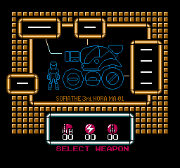 Blaster Master é um íntegro exemplo da polinização cruzada de dois estilos distintos e autônomos de videogame. Parte do jogo é um action side-scroller sem muita frescura, exceto, claro, pelas frescuras que esse review está destinado a deslindar. Nestes segmentos (mais da metade do jogo) você controla Sofia III (ou seria o “Metal Attacker”, nome invocado da edição japonesa?), armado com um canhão flexível em seu topo que pode atirar tanto para frente quanto para cima. E o mais importante: a belezura pode saltar; não só saltar, como dar pulos de dar inveja ao próprio Super Mario! Coisa única para Plataformas do período, é possível mesmo ejetar-se do tanque e entrar no fogo cruzado sobre as duas pernas, embora esse procedimento seja o mais indicado mesmo unicamente para morrer mais depressa, uma vez que os disparos da sua arminha de braço são cosquinha para os monstrengos! Voltaremos a esse aspecto da saída do tanque em breve.