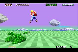 A premissa é extremamente simples na teoria, mas muito viciante. E necessita rapidez e prontidão dos dedos do jogador. Há apenas duas ações que se pode controlar: mover-se e atirar. Se estiver perto o suficiente do chão, correrá ao invés de “voar”. E ele estará sempre se movendo para frente em caráter automático, com o intuito de completar o nível. Falando em fases, são 18, duas apenas bonus stages. Nelas, muitas naves, robôs, dragões (!), elefantes ciclopes (!!) farão QUALQUER coisa para destruí-lo. Nas fases de bônus excepcionalmente o soldado Harrier estará junto de um amigo, o Dragão da Justiça Uriah, tentando destroçar o máximo de objetos/seres que puder, tudo em busca de pontos. Na verdade não estão à altura das outras fases, mas servem como um bom “recreio” entre os perigos dos 16 estágios convencionais. Dica: engana-se quem acha que o fogo inimigo é a pior coisa e que tudo vale para evitá-lo, pois as colisões com árvores, cogumelos e qualquer outra coisa “besta” dos caminhos retiram muito mais life do explorador… No início, as coisas são mamão-com-açúcar, mas o número de obstáculos aumenta tanto de estágio para estágio que cedo você estará no limite do olho humano e de seus reflexos se quiser avançar.