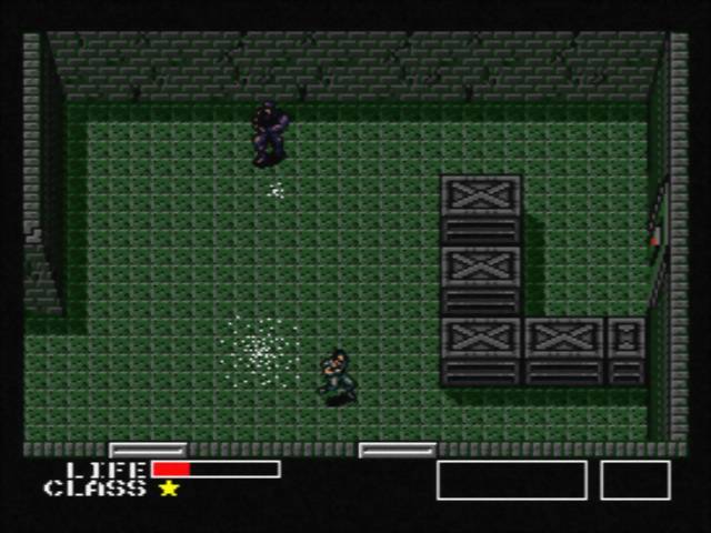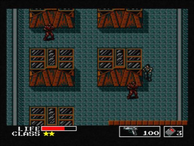 Em Metal Gear, os inimigos seguem um de dois templates: patrulhar caminhando por uma rota ou vigiar parados e girando sobre o próprio eixo para mudar o escopo visual. Maior parte do jogo – nas fases iniciais, sem muitos encontros, pelo menos –, é realmente memorizar essas rotinas e burlar a detecção. Nada muito elaborado – até que, conforme o jogo afunila, o jogador será tentado a sair trocando tiros, pois haverá muitos elementos simultâneos na tela para esperar obter êxito, ainda que os soldados sejam um tanto cegos e parvos. Este é o aspecto mais débil do primeiro jogo da saga. Ao contrário de jogos mais modernos, como o subestimado Thief: The Dark Project (1998), para não citarmos as continuações do sufixo Solid o tempo todo na matéria, que levam o stealth ao extremo, não podemos dizer que o jogador está sendo necessariamente punido por tomar a iniciativa de se revelar. O combate direto, até mesmo quando múltiplo, acaba sendo mais simples de resolver do que o realismo implicaria. Uma vez que tenha acesso a rações (healing) e munição o suficiente, sua sobrevivência não será uma preocupação primária. Assim que percebe sua presença, o inimigo entra em modo ataque, mas reseta a sua postura normal assim que você sai da tela e reentra. Mas despertar a atenção de muitos soldados causará um alerta coletivo, e a única forma de pacificar a situação será, mesmo, executando-os (5 a 10 por tela), ou, mesmo nas telas vizinhas, o enxame não reduzirá.