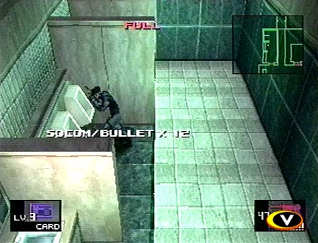 Se tem uma coisa que está em voga são stealth games com milhões de comandos diferentes, para os quais nenhum superteclado seria plenamente satisfatório. Metal Gear Solid, anterior a essa vibe, deixa as coisas simples como devem ser (uma pena não poder correr e atirar ao mesmo tempo, mas esse é um dos efeitos colaterais da proposta minimalista). Triângulo abre a visão em primeira pessoa, que proíbe a movimentação do personagem mas que é imprescindível para consertar pontos cegos da perspectiva top-down em terceira pessoa e para acionar botões de elevadores, engrenagens e coisas do naipe; Círculo/Bola é o botão de ataque; X agacha e, com a ajuda do direcional, permite rastejar, essencial para atravessar dutos de ventilação ou continuar camuflado num recinto com inimigos. L2 e R2 navegam pelos inventários (são dois, um para itens convencionais — onde estavam com a cabeça quando não permitiram conciliar o uso de máscaras de gás e cartões de acesso a outros cômodos ao mesmo tempo, aliás? — e outro só para armas). O healing é semi-automático (Snake usará o medicamento se sua vida estiver muito baixa). R1 atira. Select ativa o codec (rádio). Esses controles, por incrível que pareça, são o mais próximo que se pode chegar do “casual”, em termos de stealthing.