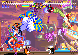 É possível fazer parries e conectar golpes no ar (air combos). Tudo parece estar em seu devido lugar; os controles fluem bem. Dispõe-se de uma spirit bar no lugar da típica super bar dos fightings da Capcom. Quando o medidor estiver finalmente cheio, C no joystick liberará seu totem. Uma time bar surge então, em contagem regressiva. Quando chegar a zero, o animal desaparece. Eles servem para desferir multi-hit combos com a maior facilidade, o que consome energia de special; ou golpes simples, mas muito eficazes, através da monocórdia pressão da mesma tecla C (o coelho, por exemplo, se transforma em cenoura e se arremessa contra o rival).
