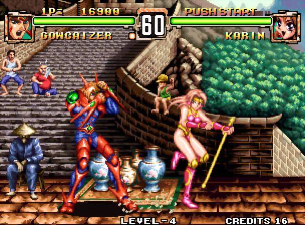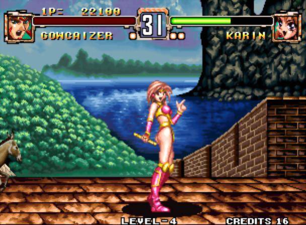 Tenho minhas suspeitas de que VFG não é balanceado ou viável competitivamente, e o potencial para alguns link combos é extremo, do ponto de vista de que “quebra” a gameplay, mas isso não importa para nós “gamers amadores”, que só queremos nos divertir. Não é como se houvesse alta demanda por uma cena de e-games ou local de Gowcaizer, tampouco. Outro aspecto que deixa a desejar seria a IA ou CPU. Enquanto que partidas multijogador são um entretenimento e tanto, o que se passa com fighters da era Neo Geo pode ser dividido em 2 categorias diferentes: difícil, mas jogável (KOF94, Fatal Fury Special); ridícula, estupidamente injogável, com aquela trademark específica de jogo dos anos 1990 (Art of Fighting 2, Galaxy Fight). Gowcaizer está situado entre um extremo e outro, mas se tivéssemos de decidir peremptoriamente, do mesmo lado de AoF2 e GF. No easy as lutas são niveladas com KOF94, o que ainda é extremamente árduo para padrões contemporâneos! Com efeito, lutas normais são divertidas, porque a CPU é agressiva e não fica plantada usando block ou counters, como as CPUs da velha guarda soíam. O problema são as lutas não-normais, i.e., os confrontos com chefões! O último chefe de Gowcaizer talvez seja o mais buffed-up de todos os tempos, sem brincadeira. Mesmo no fácil ele está programado para fazer um kill combo de 80% de dano baseado em sucessões de chutes baixos entremeados por alguns normals e um shoryuken dos infernos! O problema é que o movimento estonteará seu personagem, e na prática logo será emendado outro golpe para drenar os 20% restantes da sua barra vital sem que você possa se defender a contento…