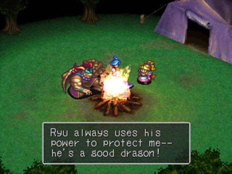 Um dos charmes do jogo é que Ryu pode se transformar num dragão. Não seria um Breath of Fire sem essa característica, afinal. Para se transformar você precisará de dragon genes, genes de dragão encontrados aleatoriamente no mapa. Cada gene possui características próprias e rende um tipo de dragão, considerado isoladamente. O mais interessante, contudo, é combinar genes (até o total de 3) para testar novas combinações inéditas e inusitadas (nem sempre mais é mais, se é que me entende, já que certos genes não combinam com outros…), produzindo, como resultado, dezenas de dragões diferentes, capazes de atender às preferências dos RPGistas mais díspares.