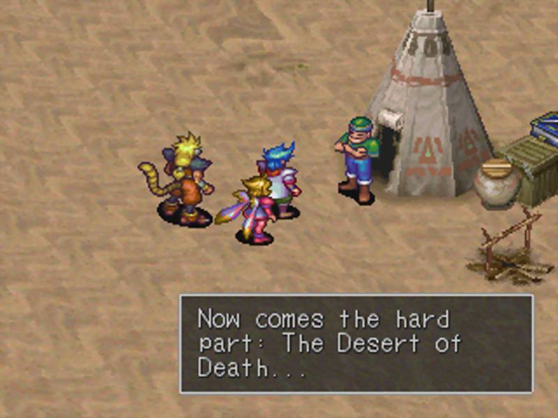 Uma parte do game que me irrita (e a muitos outros) particularmente é aquela em que se atravessa um deserto, perto do final. Existe um NPC que dá as instruções sobre efetuar a travessia, mas seja por trollagem da Capcom ou por erro na localização o fato é que o homem está ERRADO, tornando esta zona um verdadeiro martírio. Não insista com seus poderosos instintos naturais e confiança de RPGista veterano: procure o primeiro FAQ que encontrar e coloque na seção do deserto!