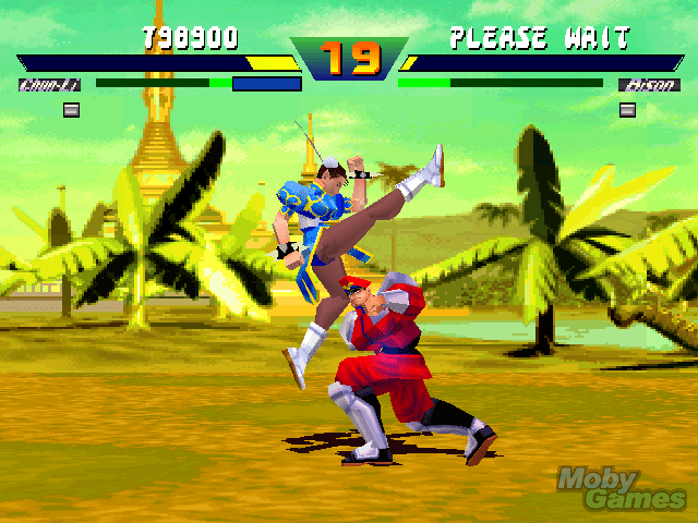 Ainda sobre o sistema de jogo, cada personagem tem 2 throws remanescentes da gameplay de SF2 (o rolling throw de Ken, etc.) mais alguns inéditos. A Chun-Li, ilustrando, tem um ótimo 5-hit throw, se é que você pode imaginar uma coisa assim! Uma coisa que deixou o CD mais xarope que qualquer outro Street Fighter para PS1, não obstante: a Capcom extraiu, na conversão americana, o auto-load e o auto-save! Pelo menos para alguém como eu, que tem preguiça de ir no Options toda santa vez que inicia uma jogatina, é um tanto inconveniente. Imagine, ainda pior, que você teve o maior trabalho para destravar secrets e então desliga o PlayStation num ato-reflexo, esquecendo-se de salvar seu progresso antes! O-ou…