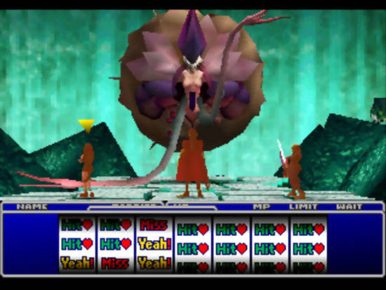 Tentei achar uma música ruim ou insatisfatória no jogo, mas não dei conta. Esse está entre os melhores trabalhos de Nobuo Uematsu, o lendário compositor da Square, comparável ao que ele fez em FF6 e FF9. Há composições enérgicas, drásticas, tristes, etéreas, misteriosas, alegres… Duas são especialmente citáveis: Aerith Theme e One-Winged Angel, monumental tema tocado para a nêmese do jogo. O tema de Aerith pode levar os mais sensíveis às lagrimas, mesmo que nesse 1997 a qualidade das músicas não seja exatamente operística: elas sofrem compressão e são quase que MIDI. Já o tema do algoz Sephiroth é algo longo e épico, reminiscente, provavelmente, da ária da Rainha da Noite de Mozart.
