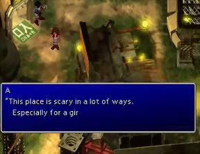 Obviamente, como é um RPG, o enredo é um tanto mais drástico: mako interagindo diretamente, em grandes quantidades, com seres humanos causa mutações que causariam inveja a nossos elementos radioativos. Há pessoas que se converteram em monstros graças a acidentes. Seja como for, no caso de Midgar os ricos moram em cima, numa cidade luxuosa, enquanto os pobres moram embaixo, nas favelas, separadas por estruturas metálicas do “mundo dos patrões”, confinados em lugares mal-iluminados, sem esgoto, sem condições de vida palatáveis. Os suspensos nas plataformas da megalópole possuem “tudo”. Iremos nos aprofundar nos arcos individuais dos protagonistas, quase sempre provindos de ambientes traumáticos, como forma de aprofundarmo-nos no enredo: