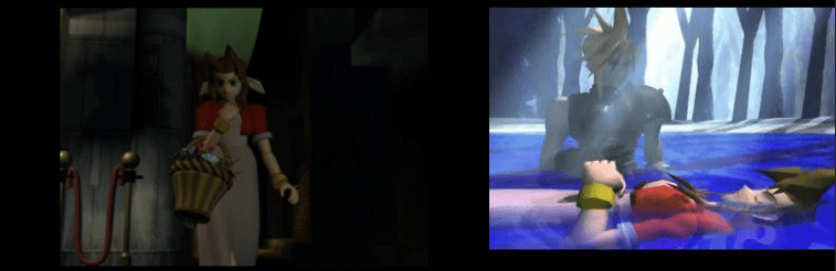Esq.: Final Fantasy VII (1997); dir.: Final Fantasy VII Remake (2020).