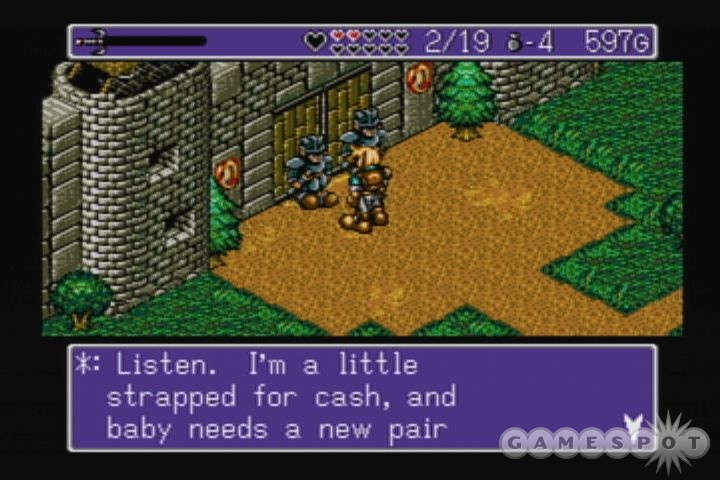 Um bom tira-gosto de lentilhas em qualquer bar regenera o HP de Nigel, mas atenção: assim como no mundo real, alguns restaurantes metem a faca mais que outros (e o bom é poder levar pra viagem – não queria usar o trocadilho, mas todo RPG tem belos menus cheios de comida, bastando pedir ao garçon chamado Start button!)…