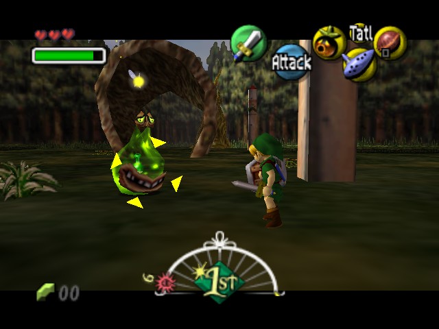 Em termos de variedade, os inimigos satisfazem. Os mais minimalistas são como limo ou bolhas dotados de vida própria que possuem apenas um padrão aleatório de movimentação (não obstante “limos-vivos” de dungeons mais avançadas terão mais HP e possuirão movimentos mais complexos e erráticos, difíceis de desviar), evocando as gosmas coloridas habitantes de Termina Field em Majora’s Mask (aprecie os quadros comparativos logo abaixo). Magos arremessam bolas de fogo e se teletransportam para pegá-lo desprevenido na próxima esquina. Ogros não raciocinam muito bem, mas são sempre ferozes, avançando sem rodeios. Como em todo RPG que se preza, palette swaps estarão presentes quando chegarmos a um ponto da narrativa em que os desenvolvedores não conseguiam mais conceber criaturas novas.