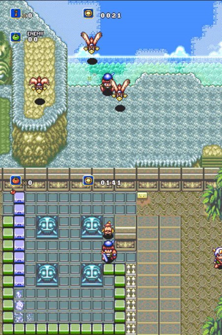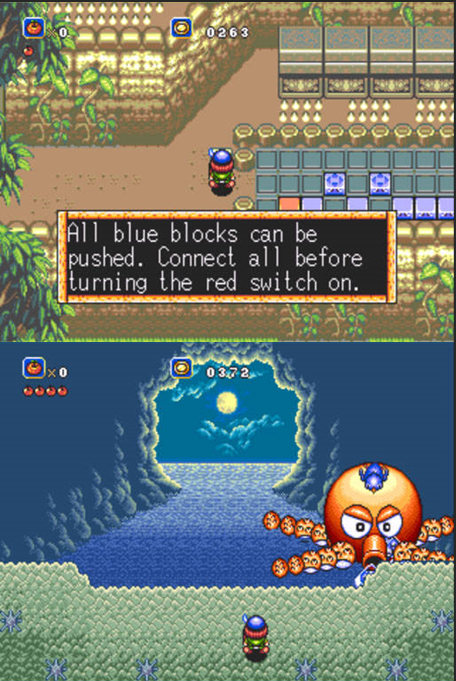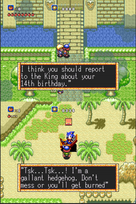 Como em muitas instâncias em Zelda (no 2D ou no 3D), puzzles de empurrar e puxar blocos (até sob a água!) marcam presença; numa das ocasiões, será necessário vedar uma corrente fluvial contrária que impede seu progresso, usando desses enormes e pesados blocos, já consagrados pelos RPGs. Dar espadadas em switches para abrir passagens secretas não é nada novo, idem, e é visto com certa recorrência. Por isso, não se trata de um jogo a ser visitado por anti-nintendistas, apesar de estarmos falando de um produto exclusivo for Sega.