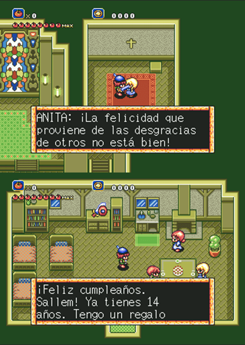 –Semi-spoiler–: Com meia hora de jogo transcorrida, o protagonista perde a habilidade (?!) de conversar com humanos, mas, para compensar, ganha a de entender a fala dos animais, sejam eles criaturinhas amistosas ou os próprios oponentes com quem não se cansará de medir forças. Só Deus (ou o Game Master) sabe se você vai conseguir falar com bípedes sem penas novamente em Crusader of Centy! Prepare-se para ouvir (ler, já que as falas não são dubladas, seria o mais correto) muita fofoca anti-humanidade: porque o homem não presta, ele é o lobo da natureza, etc., etc.!