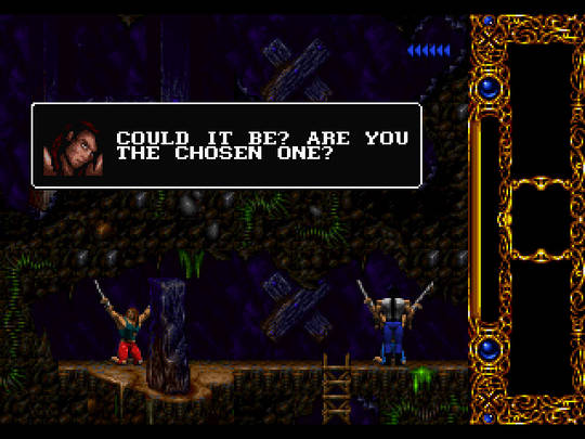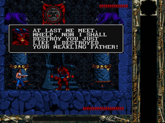 Um defeito de Blackthorne é que, com um enredo tão elaborado logo na intro (e no manual de instruções são dedicadas 19 páginas para contar a estória em vermelho lá em cima!), não deixa de ser decepcionante constatar que a narrativa não se desenvolve quase nada no decurso da exploração do jogador. Mas eu não vou estragar a surpresa sobre o (pouco) que ainda não revelei sobre a saga…