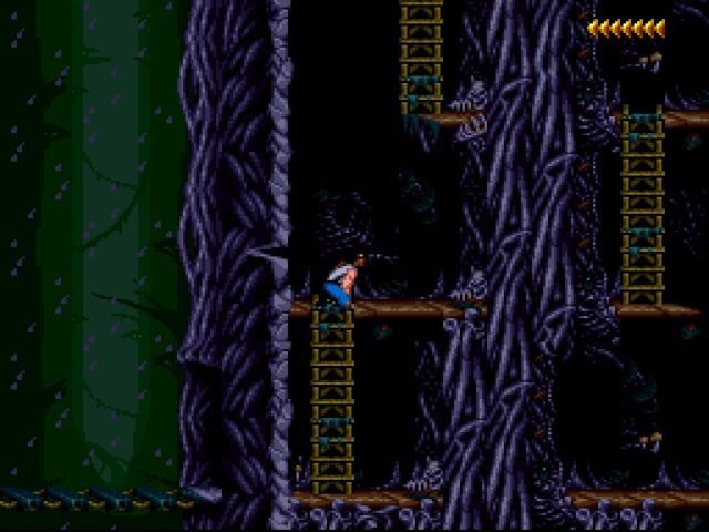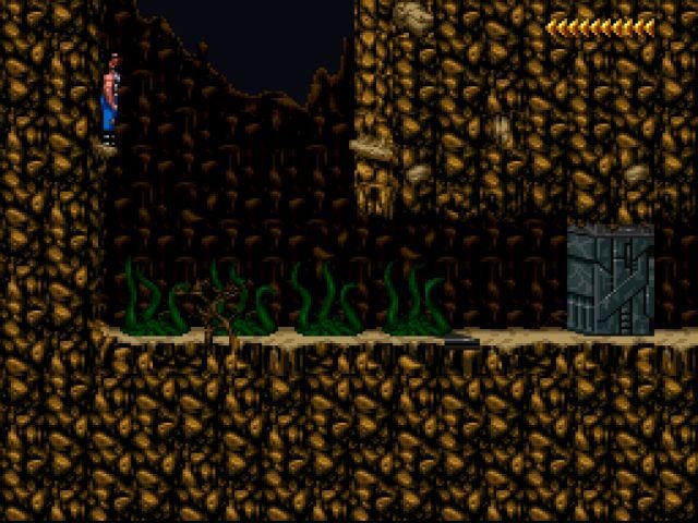 Nota sobre os controles, para reforçar: action games, ainda mais os de raiz, isto é, da era clássica dos games, não dispõem de jogabilidade hiper-complexa. Blackthorne não foge à regra. Dependendo da situação, a função dos botões pode mudar, mas no fim não são tão vastos os comandos. É preciso entender alguns tabus para não morrer e morrer sucessivamente: não se pode pular com a arma sacada. Ou você atira ou você se concentra nas plataformas. Então lembre-se que se houver um inimigo localizado depois de um abismo, você precisa parar, se camuflar no cenário, tirar a arma do coldre e só então partir para o ataque! No começo isso vai exigir “pensar” muito, hesitar, titubear, vacilar, voltar atrás. Com o tempo, todavia, cheirará a instinto, será automático!