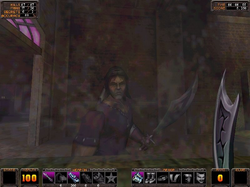 Baseado nos personagens fictícios e apenas levemente remanescentes dos integrantes da banda americana K.I.S.S., criados da ponta do lápis de Todd McFarlane, um dos olimpianos das comics, KISS: Psycho Circus: The Nightmare Child (grandes títulos, maus negócios…) foi lançado para PC e Dreamcast, num intervalo de não mais que 4 meses. O que veio com o licenciamento de uma poderosa marca para chamar a atenção acabou em tragicomédia e decepção. O gênero é tiro em primeira pessoa, estilo arcade, e a aposta alta reside sobretudo nos números: 24 tipos de bestas infernais para confrontar, 3 classes completamente divergentes entre si de armas para empunhar (sendo que cada classe possui dezenas de sub-opções) e a possibilidade não só de trocar tiros mas se engajar em duelos mano-a-mano com armas brancas e/ou de curto alcance. O conceito de power-up também parece promissor: quanto mais itens coleta o protagonista (um dos 4 da banda Wicked Jester, é lógico), mais forte ele vai ficando. Permanentemente, ao contrário da maioria dos shooters em que passar de fase significa perder praticamente todos os poderes e o arsenal juntos.