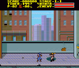 Ninja Gaiden dispensa apresentações; se bem que como estamos revisando o episódio seminal, aqui vai um pequeno prólogo: NG começou sua carreira de destruição ninja no Nintendo System em dezembro de 1988 e o sucesso foi tanto que os caras da Tecmo ainda continuam com a franquia, e em alta, até hoje… Mas falando desse episódio pioneiro, ele reapareceu pelo menos duas vezes, em versões aperfeiçoadas para PC Engine (só no Japão, em 1992) e no Super Nintendo, em 1995; sem falar que o próprio NES recebeu as continuações 2 e 3, formando assim a “trilogia clássica”.