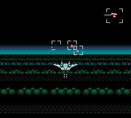 A música é o único aspecto que eu absolvo na versão NES. Maioria das faixas é fiel às originais, mesmo que sedadas pelo hardware mais tímido. Minha música favorita ainda é a do level introdutório. Sempre me lembra Top Gun, que por alguma coincidência do destino é de 1987, mesmo ano da criação da franquia After Burner! O radar bipa sempre que um inimigo está prestes a colidir consigo ou um míssil está atrás do seu rabo.