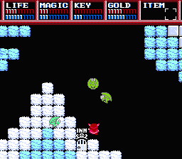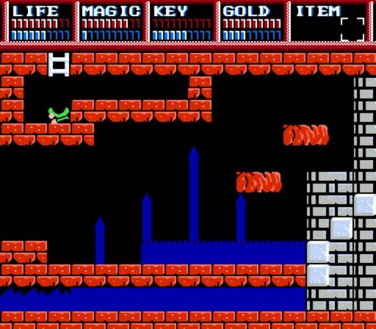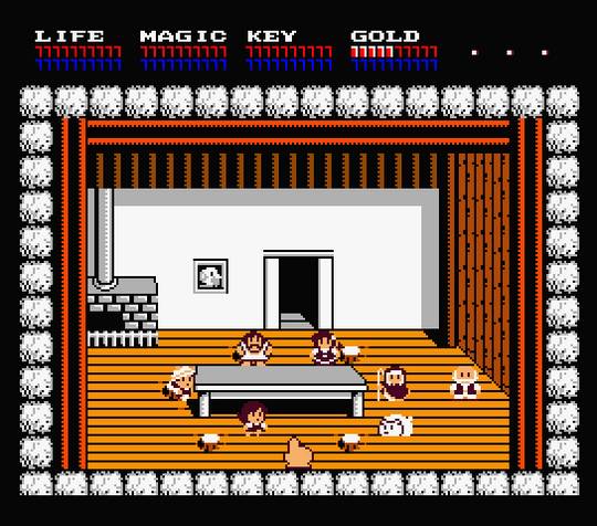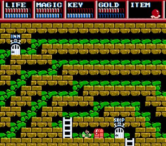 Me imagino já a cena: um rapazinho (estamos no comecinho dos 90) se aproxima de seu NES com um pacote de folhas e vários lápis, insere o cartucho de LoTW, seleciona o Pochi e começa a percorrer tela por tela de longo ao largo, se dando conta da localização de cada negocinho, passagem secreta, camuflagem de terreno que oculta coisas de valor, sem falar de tudo que se encontra trancado no momento em que é achado, seja mais uma porta ou uma arca. Ao menos Pochi não chega ao “fim da linha”, porque existe um trecho em que já não pode saltar e avançar, pois seu pulo é muito abreviado… Mas ainda resta toda a viagem (literalmente, uma viagem) de volta, e obter a password da velha (deve ser a avó DraSle), caso queira registrar os progressos para uma próxima sentada diante do NES… e que sentada! A bunda está quadrada! Depois de falar com a velha esclerótica, continuando ainda nessa ou então noutra sessão de jogo, o gamer optará por um personagem mais lépido como Lyll, a fim de tentar ultrapassar o último ponto da dungeon, e assim a coisa desenvolve… Cansa só de relatar!