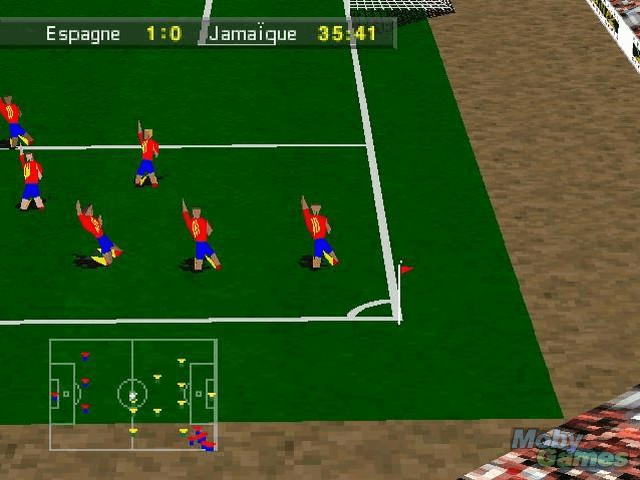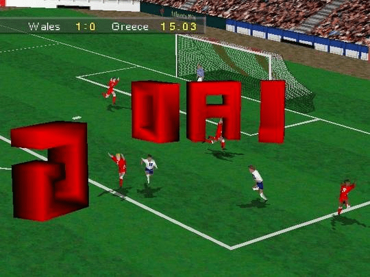 Os gráficos não estão à altura de nenhum futebol do período. Prefira um International SuperStar Soccer em sprites no Super Nintendo: o 3D primata daqui é horrendo! De longe os jogadores até se passam por seres humanos retratados digitalmente, mas as cenas em close assustam de tão paspalhas.